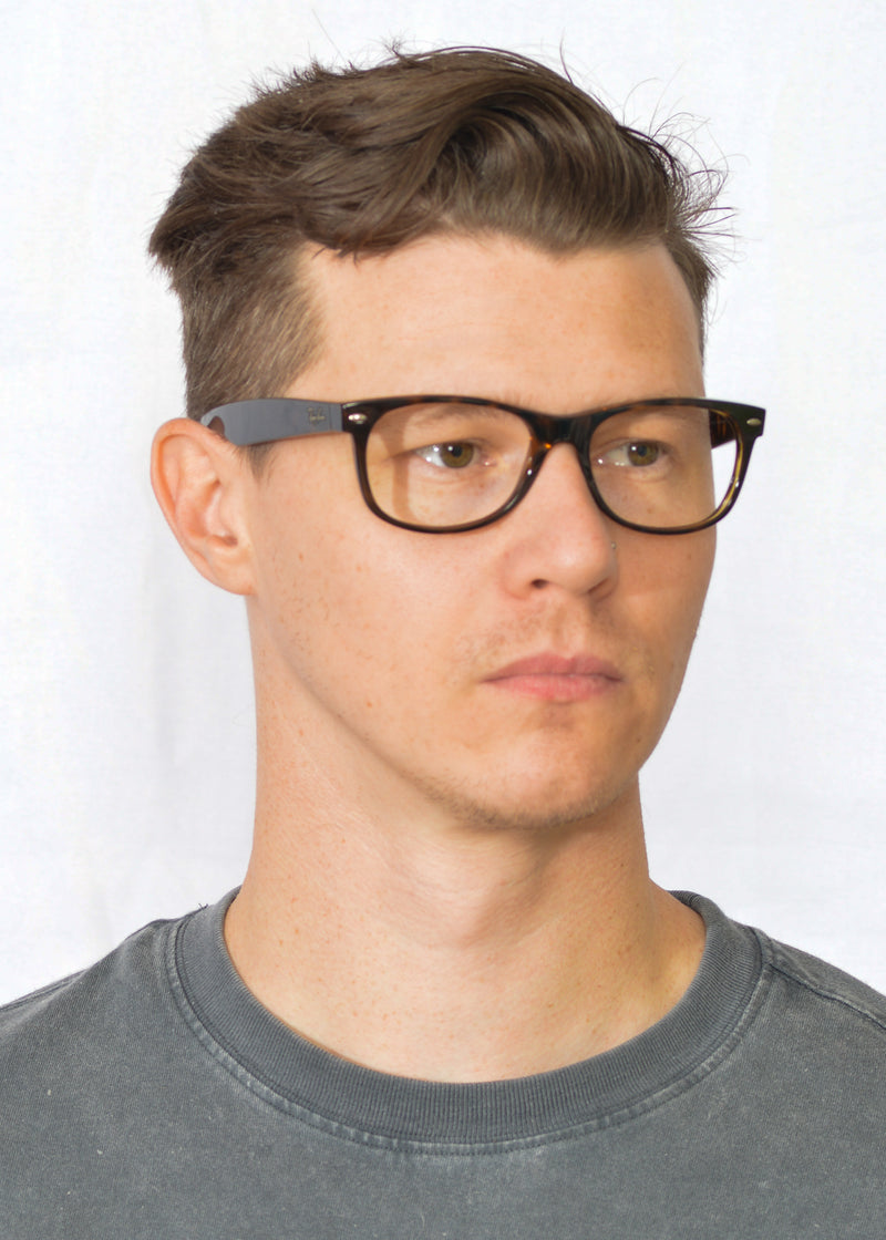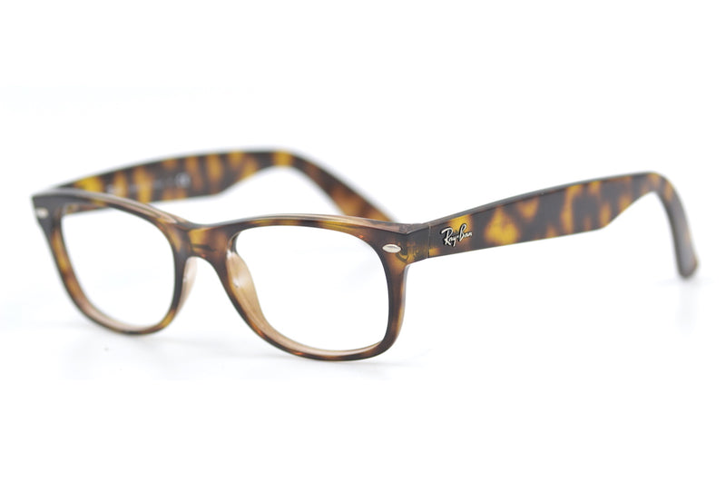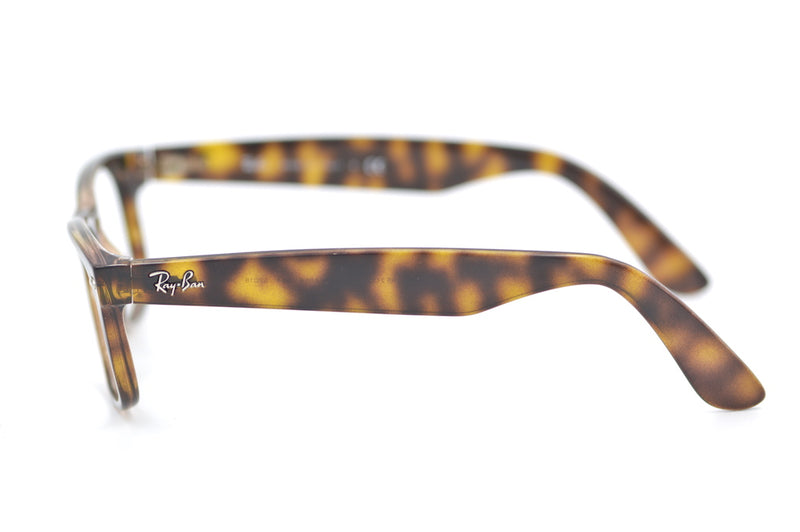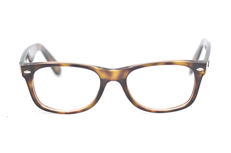 RayBan 2132 New Wayfarer in colour 944, brown mottled acetate. This frame is not fitted with lenses, but can be easily converted to prescription glasses or sunglasses. Made in Italy the frame features the signature rivet detailing to the front temporal edges and the temple sides feature the RayBan signature. This authentic frame is a timeless classic. This up-cycled frame is in good condition with very little sign of wear, see pictures for condition.