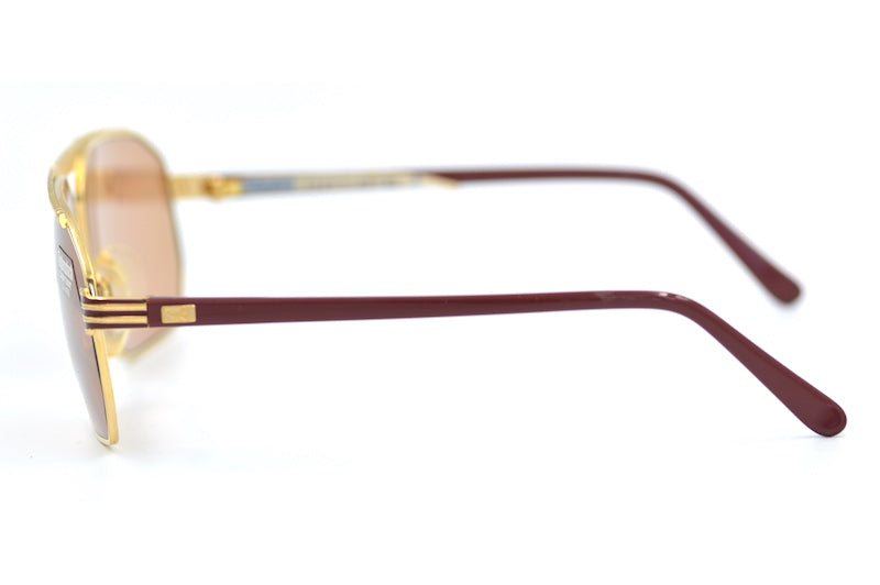Rodenstock Supersonic 1745 rare vintage sunglasses. This super stylish frame is reminiscent of Brad Pitt's sunglasses in the F1 movie. Red lacquer detail present on the bridge and temporal edges. The sides are made of deep red acetate and the left side has the Rodenstock emblem. The warm brown lenses have the Rodenstock Supersonic UV400 protection. If you want a pair of men's stylish sunglasses look no further.
