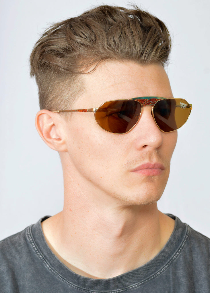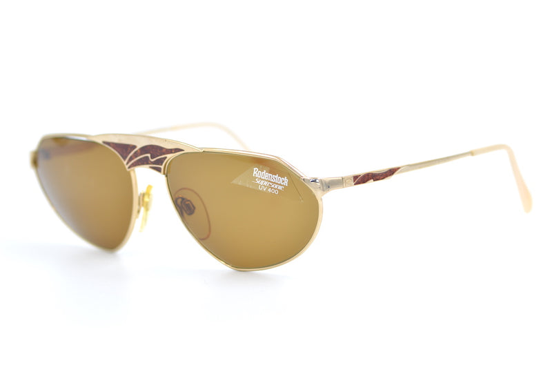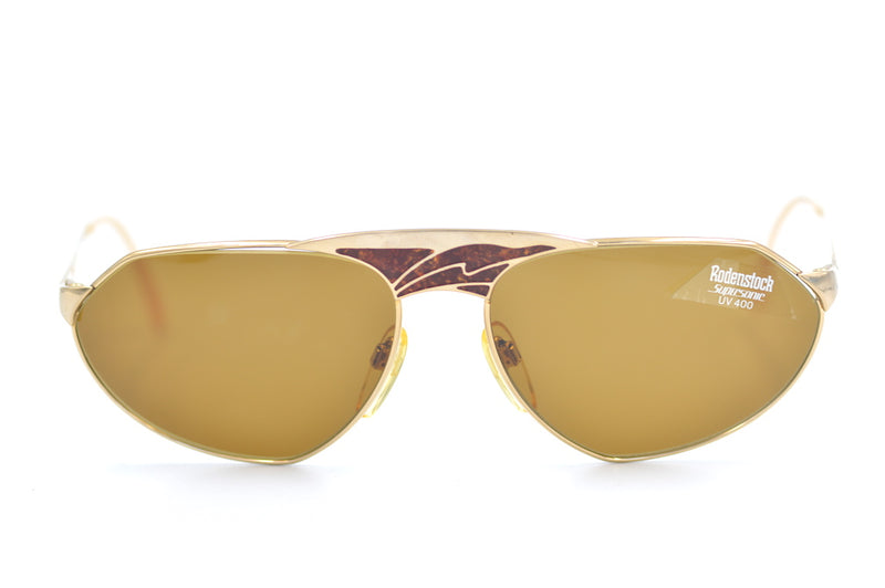 Check out this incredibly stylish Rodenstock Supersonic 1748 vintage sunglasses frame. This gold plated frame features magnificent brown marbled laminate to the bridge and temporal side. Warm brown lenses provide 100% UV protection. .