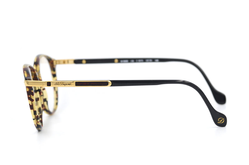 Magnificent 1980's S.T. Dupont vintage glasses, model 009 in colour 3079. Luxurious, sleek and stylish this vintage glasses frame is not to be missed. Manufactured in Austria, it has been handmade to original designs. It is a limited edition and is individually numbered to guarantee its unique quality. The front is made of grey, amber and red mottled acetate. The temporal sides black with gold plated and enamel detail. The brand was created in 1872 by Simon Tissot Dupont. Theses luxurious spectacles are a real investment piece for the discerning gent. Original authenticity card provided.