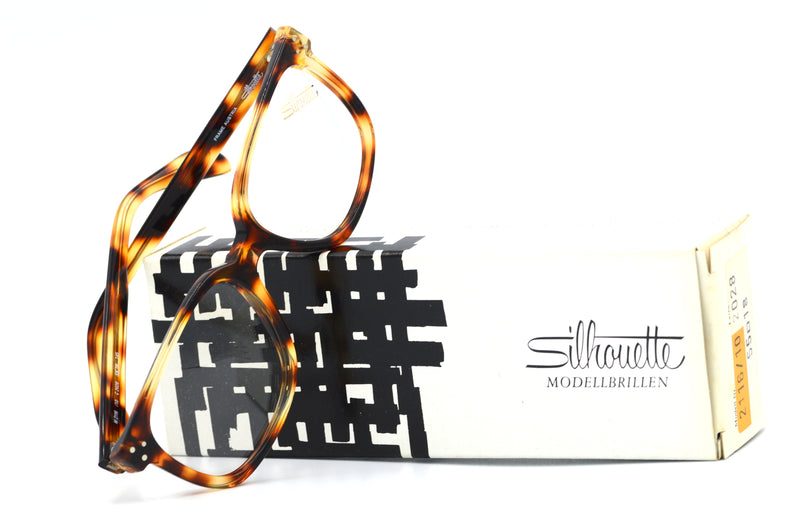 New old stock, Silhouette 2116/10 vintage glasses in colour 2028. This frame was manufactured in Austria and the high quality materials and craftsmanship is evident. The acetate features a bold brown mottle finish. Three silver pin head rivets can be seen to the front temporal edges. A stylish vintage glasses frame not to be missed. Available in other colours and sizes, view full Silhouette collection here. Custom lenses available from £29.00. Please note due to the nature of this frame, the acetate pattern may differ slightly from frame to frame.