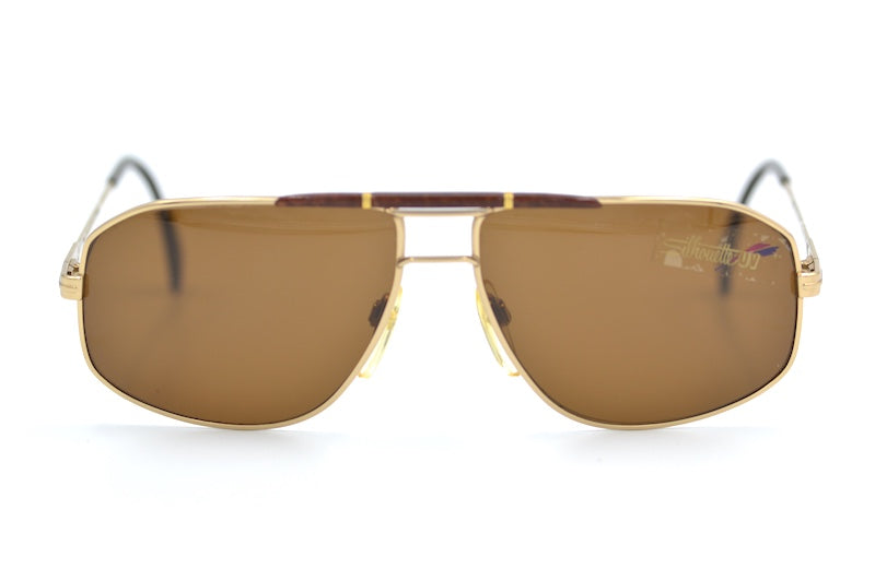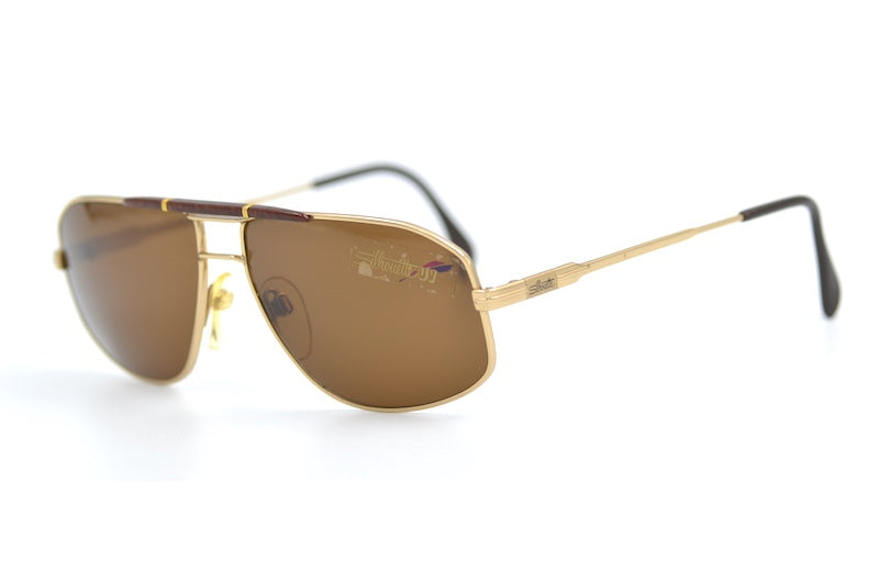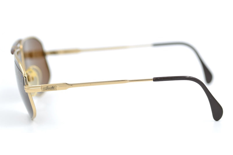 Silhouette 7100 sunglasses, new unused vintage stock. Manufactured in Austria in the 80s Original Silhouette UV lenses. Gold metal frame with brown marbled double brow bar for added style and strength. Shop stylish men's sunglasses online at Retro Spectacle.