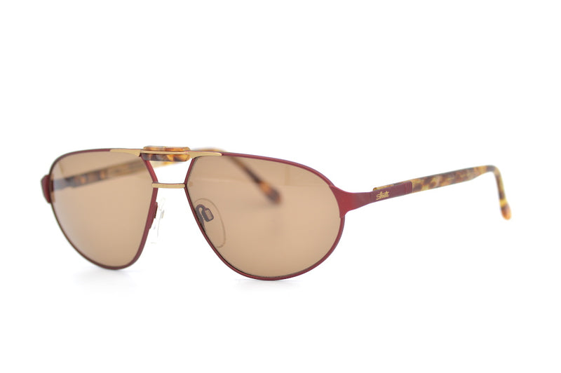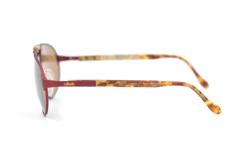 Silhouette 8535 in colour 30. Manufactured in Austria in the 80s, this new old stock oversized aviator in in superb condition. A generous size for those who require a wider fit frame. Brown lenses provide 100% UV protection. The red matte finish frame makes a welcome change to the blacks and browns we so commonly see. The Silhouette signature can be seen on the left temporal side. A real stylish aviator for the discerning gent. Silhouette have been creating iconic eyewear since 1964, they still continue to manufacture frames in Austria to this day. Brad Pitt Apex style sunglasses.