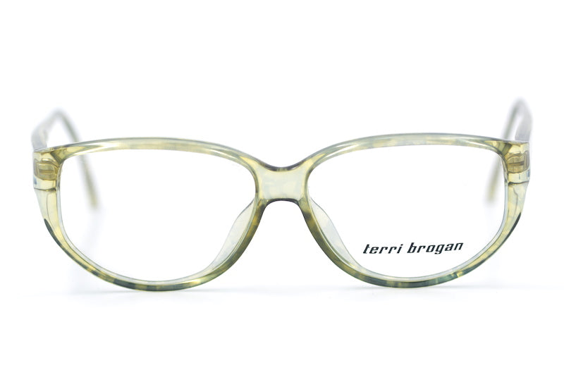 Terri Brogan 8870 50 cat eye vintage glasses. New unused stock. Green mottled finish. Lightweight, comfortable and durable design. A soft feminine shape, in a petite/small size.