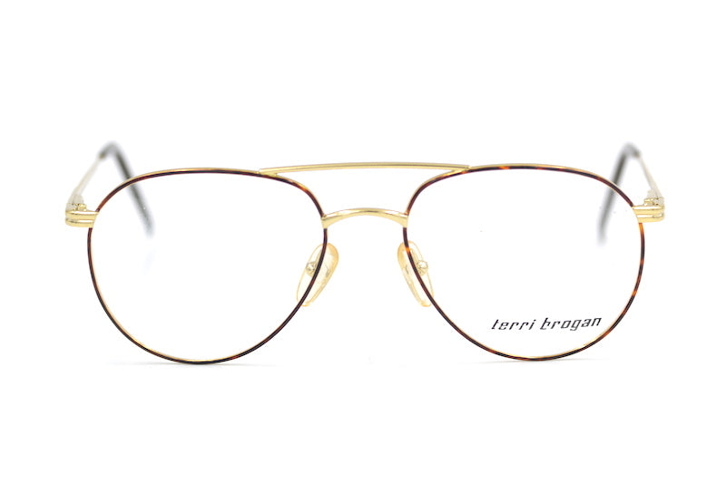 Terri Brogan 8918 vintage glasses in colour 41. Designed in Austria by Carrera. New unused vintage stock. Mens aviator glasses, in a mix of gold. and brown mottled metal. Stylish glasses for men.
