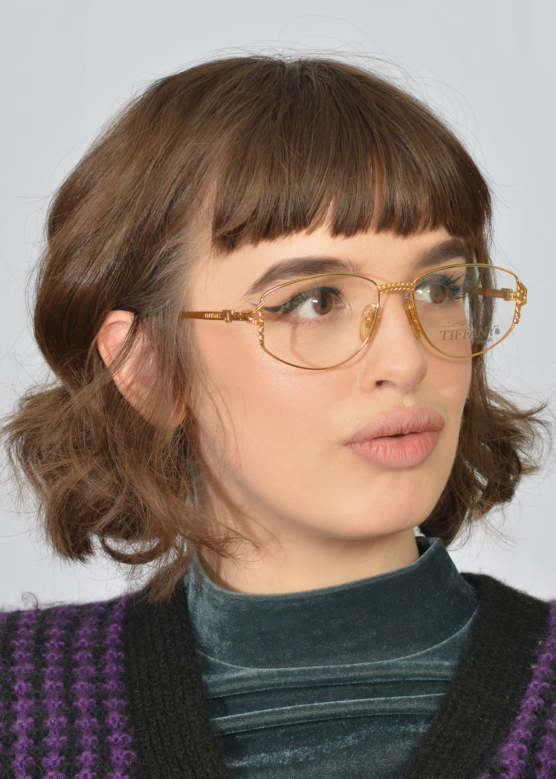 Tiffany 342 vintage glasses in colour 4. This 23KT gold plated frame was handcrafted in Italy using the highest quality materials. Chain detail is present to the bridge and the temporal sides have the Tiffany branding. Women's stylish luxury eyewear. Original display box, with case, spare nose pads, screws and temple tips. Stylish women's eyewear.