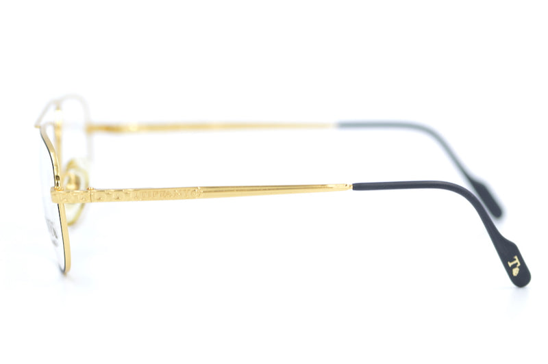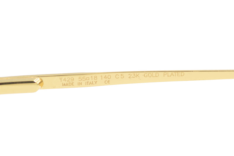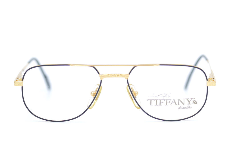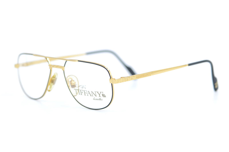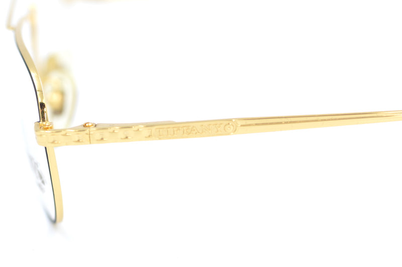 New old stock Tiffany T429 vintage glasses. Manufactured in Italy, using the finest materials. 23KT Gold plated. The temple tips feature the Tiffany emblem and the temple sides have the Tiffany signature along with magnificent "Rolex" strap detail which also appears on the bridge. This is a luxurious aviator frame, regarded as unisex. Simplistic yet super stylish. The frame comes with the original outer packaging, spare nose pads, temple tips and screws. Spectacles or sunglasses, this frame will look magnificent.
