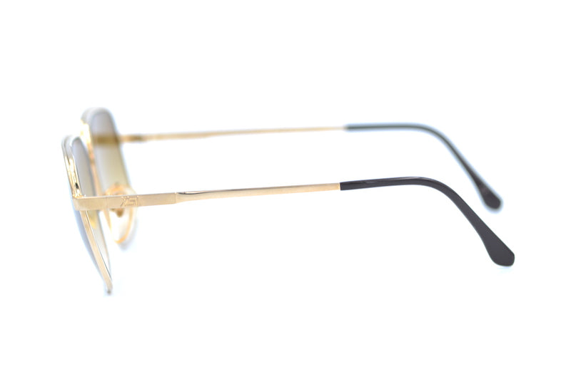 Step out in style in vintage Yves Saint Laurent 30-3121 sunglasses. This vintage unisex design has a real 70s vibe and features a mix of polished and matte gold metal. The bridge is packed with detail and the temporal sides feature the YSL branding. Golden brown graduated lenses provide 100% UV protection. Suitable for custom lenses. New unused vintage stock.