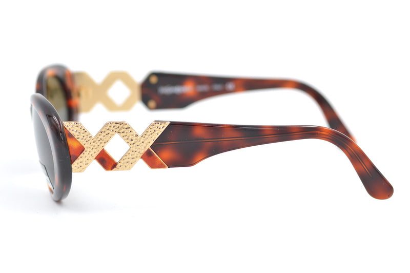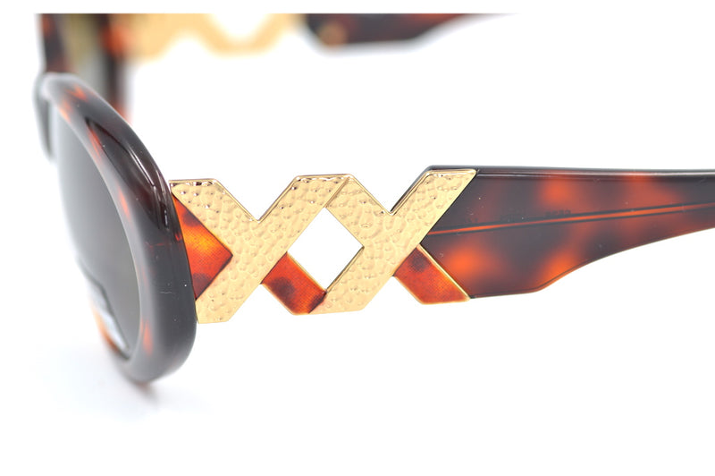 New old stock, with original case, we bring you Yves Saint Laurent 6536 vintage sunglasses in colour Y553. This stylish oval frame is made of brown mottled acetate and features one of the signature patterns from YSL in gold metal. The brown lenses provide 100% UV protection. Shop the best selection of vintage YSL eyewear at Retro Spectacle.