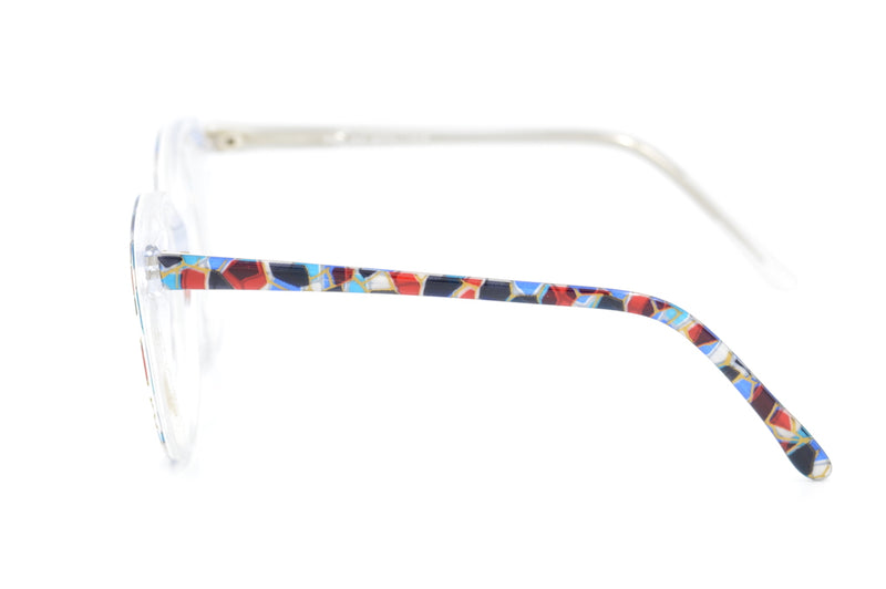Only 2 left. New old stock Zoe by Brulimar in colour 2295. This 1980s oversized vintage frame in so on trend right now. The acetate has a mix of white, red, blue and black. This is the smallest frame in the Zoe by Brulimar range. Super stylish Zoe by Brulimar is guaranteed to thrill, regardless of what colour you choose.